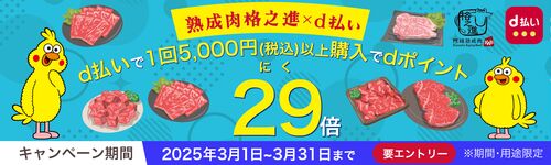 【3/1~3/31】(d払い)熟成肉格之進 dポイント29倍キャンペーン2025年3月